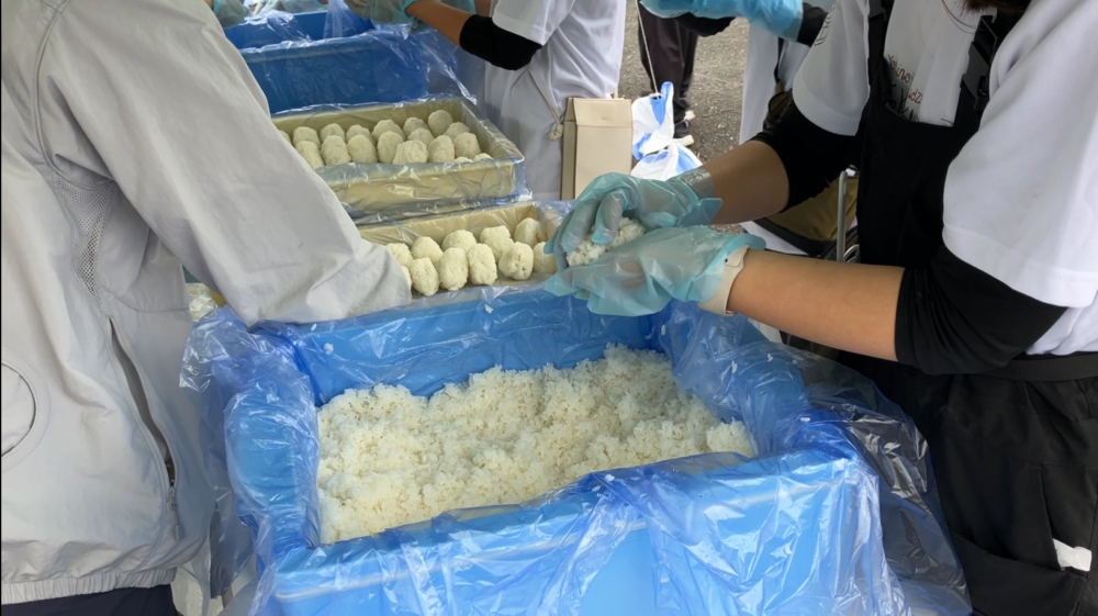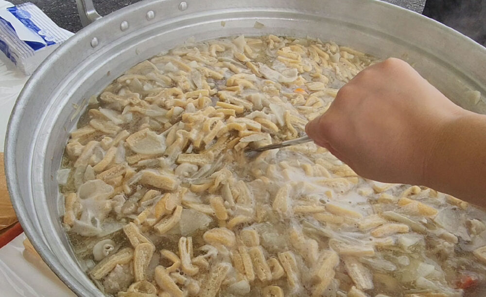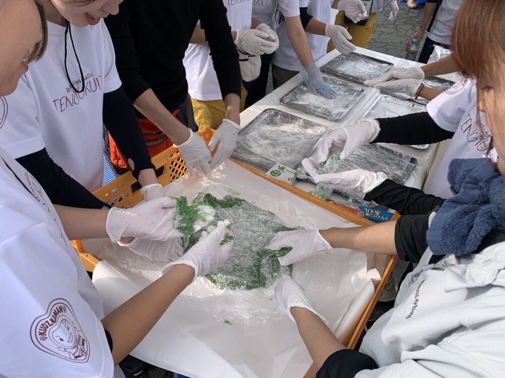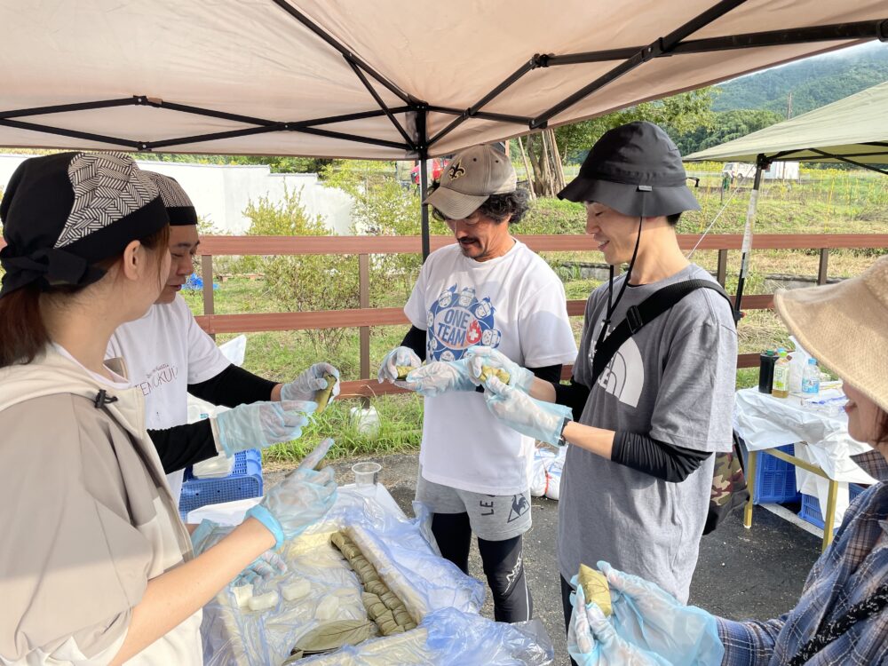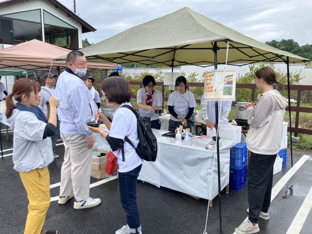 つくね芋チームは豚汁をふるまいました。野菜は仕入れ先様よりご提供いただき、お好みですりたてのつくね芋トロロをトッピングも行い「美味しかった!」とのお声をたくさんいただきました。