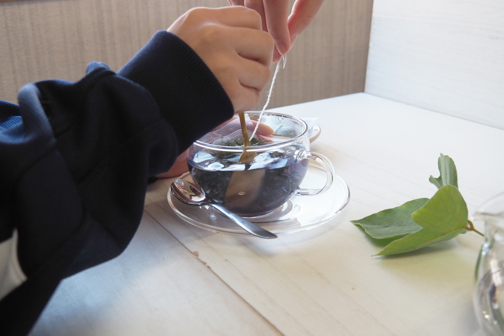 水の種類や温度でお茶の色の出方が変わる不思議な体験と、それをシャッターに収める体験は生徒さん達も工夫して行ってくれました。