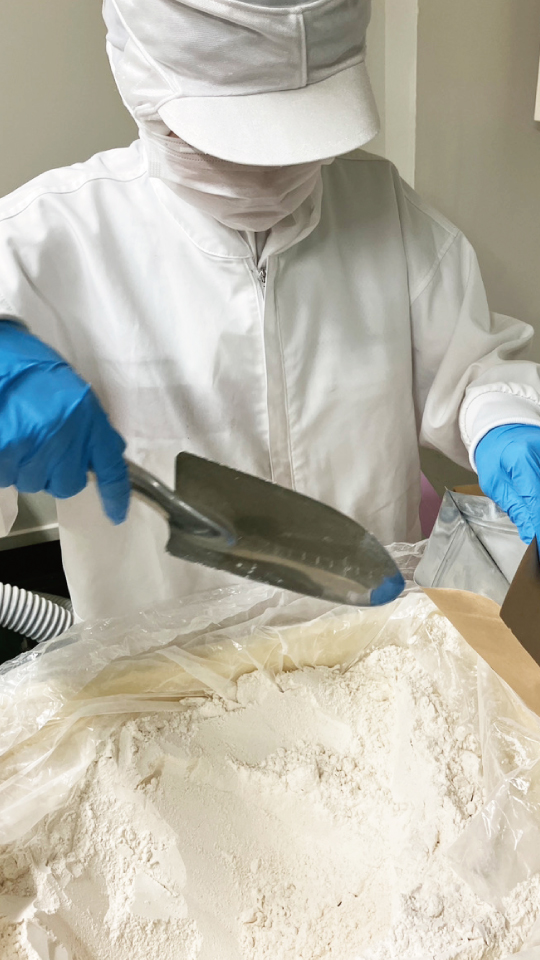 初めに葛湯の生姜味の粉をお店で売る袋に詰めました。(粉の量1007∼1008g)
