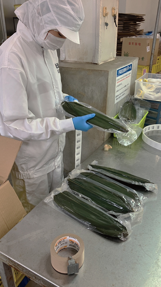 午後は濡れている笹の葉の商品を拭いていく作業ですごい数があってビックリしました。