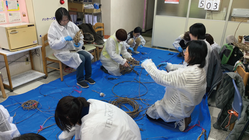 実際編んでみると意外と体力を使いますが、作ったかごに装飾を施す方やまた別のかごを編み始める方など、参加者の皆さまの熱中具合にスタッフもビックリ。