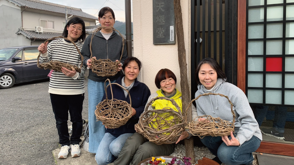 和気あいあいとした雰囲気の中、沢山の素敵なかごが誕生していました。