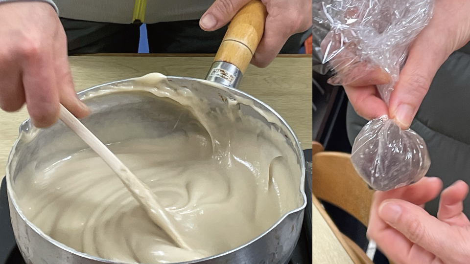 もちろん吉野本葛を使ったお料理で、今回は胡麻豆腐・葛まんじゅうを作っていただきました。