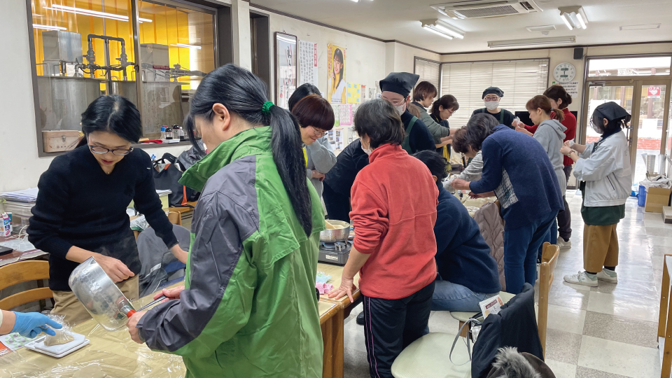 その後、天極堂の本社工場へ移動し葛クッキング&工場見学!