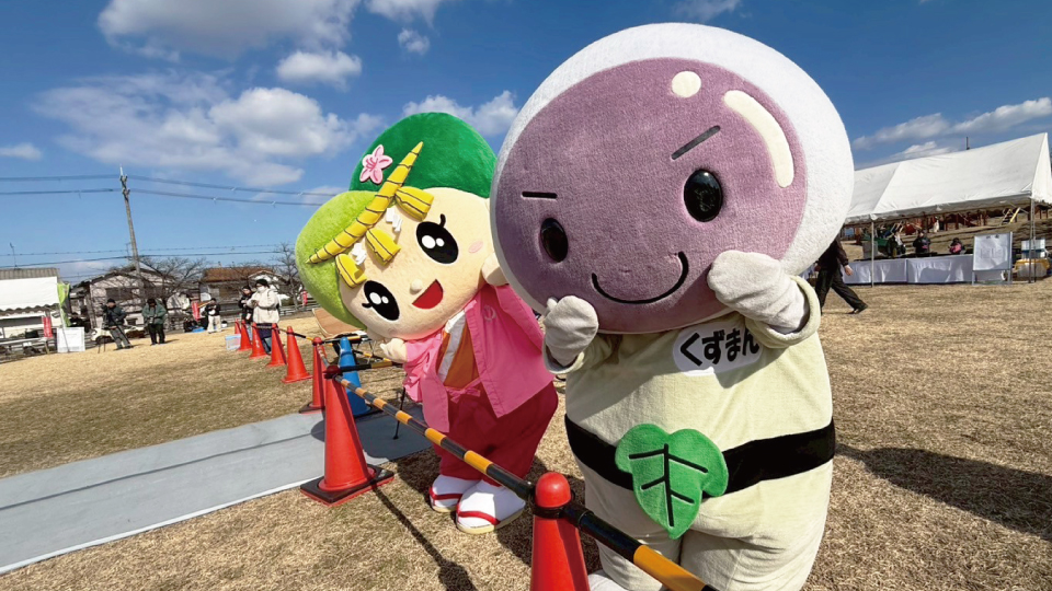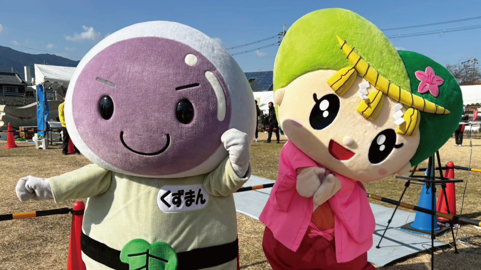 御所市マスコット『ゴセンちゃん』と、天極堂マスコット『くずまん』が登場!