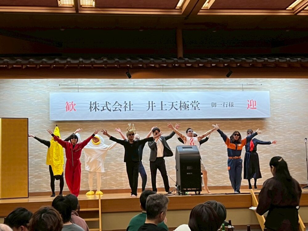 天極堂の宴会は歌に踊りに衣装まで気合十分。社長のあいさつで「全力で楽しむ」とありましたが、する方も見る方も全力で楽しめたひと時でした。