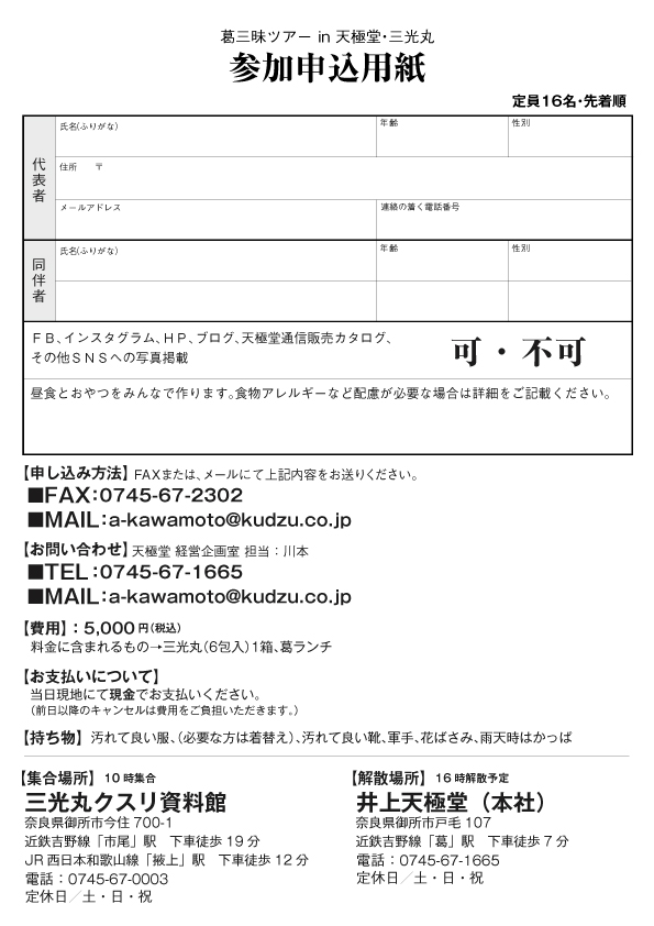 葛のつるとり&三光丸クスリ資料館見学&天極堂工場見学&葛ランチ・おやつ作り