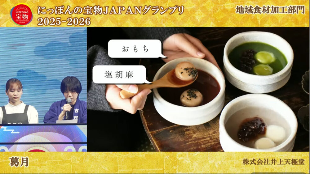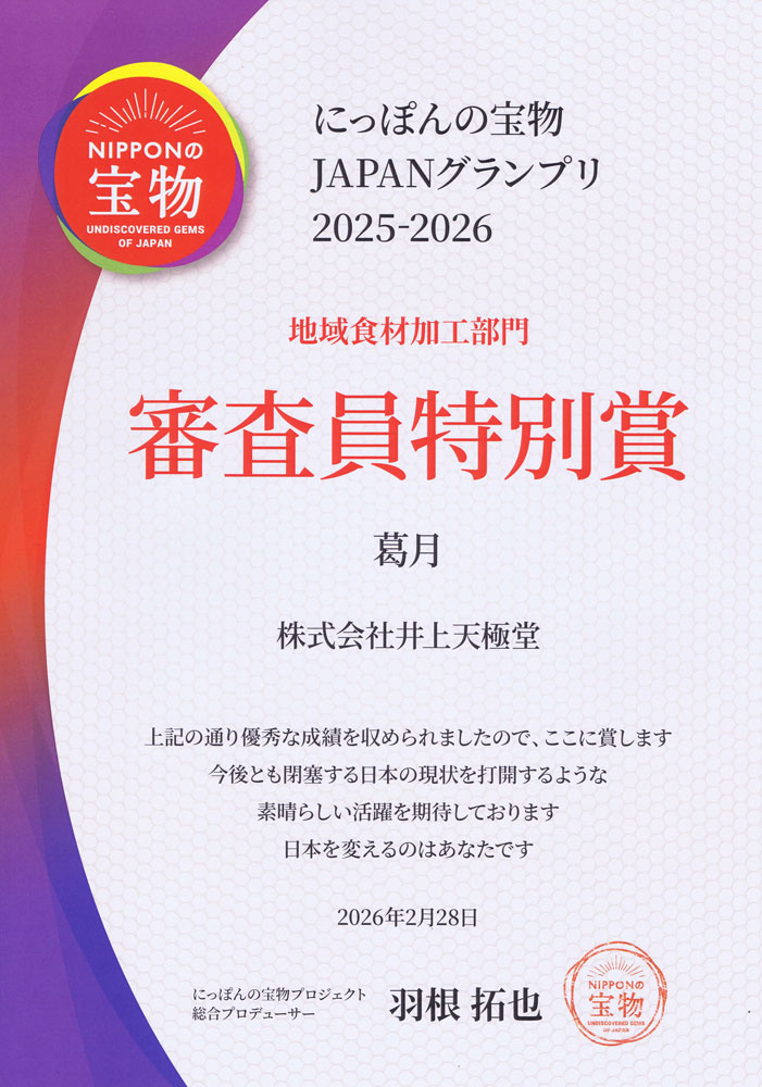 天極堂は今年も全国大会に出場しており、「葛月」で地域食材加工部門で審査員特別賞をいただきました。
