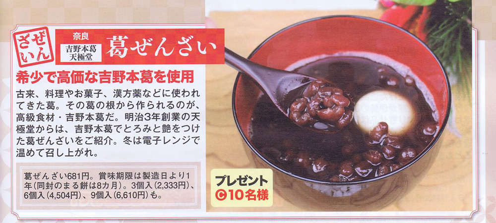 女性自身2026年2月24日号の特集記事にて天極堂の「葛ぜんざい」をご紹介いただきました。