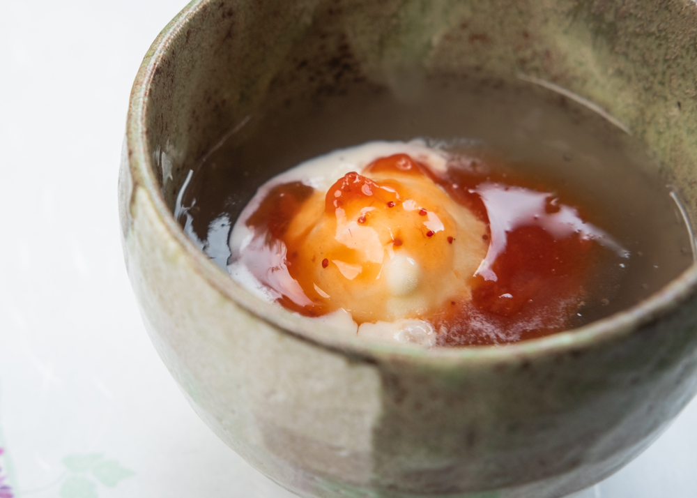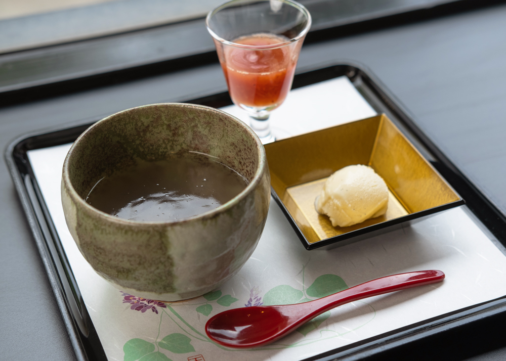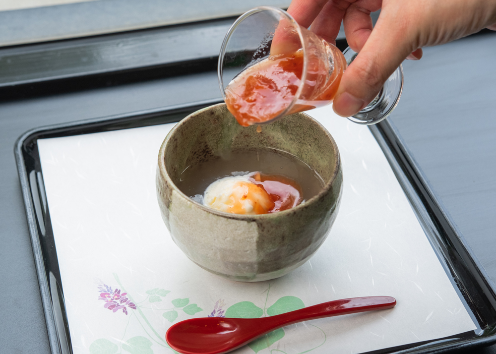 バニラアイスのひんやりとした冷たさを、葛湯のとろ~り温かい食感が優しく包み込みます。